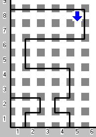 en donde puede haber cualquier cantidad de calles y cualquier ancho en las avenidas (siempre cerrado el circuito y sin "islas" o bifurcaciones),deje en la esquina izquierda más inferior (2,1 en el ejemplo), tantos zumbadores como número de calles de ancho 1 que hay, Karel lleva infinitos zumbadores en su mochila. En resultado del ejemplo es 3.