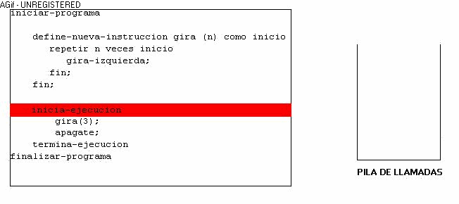 Como punto importante, hay que destacar que en la pila de llamdas, además de la instrucción que sigue, también se guarda el valor actual del parámetro.