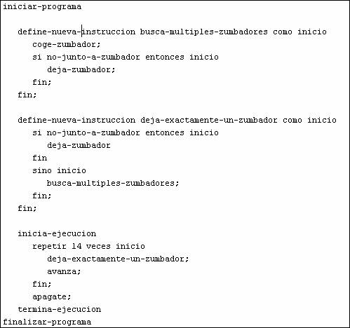Las sentencias define-nueva-instrucion están situadas en un sitio especial dentro de un programa de Karel, justo después de la sentencia iniciar-programa. El siguiente es un programa válido para Karel: